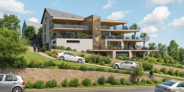 Im Zentrum von Fischerbach ist der Entwurf für ein modernes Mehrfamilienhaus mit sieben Wohneinheiten entstanden. Das Gebäude besticht durch eine klare, zeitgemäße Architektur und fügt sich harmonisch in das bestehende Ortsbild ein. Großzügige Terrassen, helle Wohnräume und eine hochwertige Materialwahl prägen das geplante Wohnkonzept.