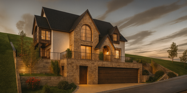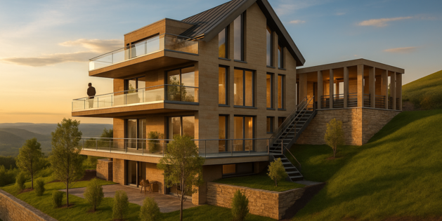 Aktuell befindet sich das Projekt in der Vergabephase der Bauarbeiten. Mit seiner markanten Natursteinfassade, den großen Fensterflächen und der sorgfältig geplanten Hanglage fügt sich das Haus perfekt in die Umgebung ein. Der Entwurf vereint traditionelle Bauweise mit moderner Wohnqualität – ein Zuhause, das Stil und Behaglichkeit ausstrahlt.