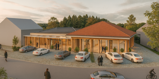 Das Gebäude überzeugt durch eine klare Formensprache, helle Fassadenelemente und großzügige Glasflächen, die Transparenz und Offenheit vermitteln. Ziel des Projekts ist es, den Kundinnen und Kunden künftig noch mehr Raum und Komfort zu bieten – sowohl im Verkaufsbereich als auch im Service.